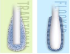 (a esquerda é a cabeça do cotonete de amostragem tradicional; a direita é a cabeça do cotonete flocado)